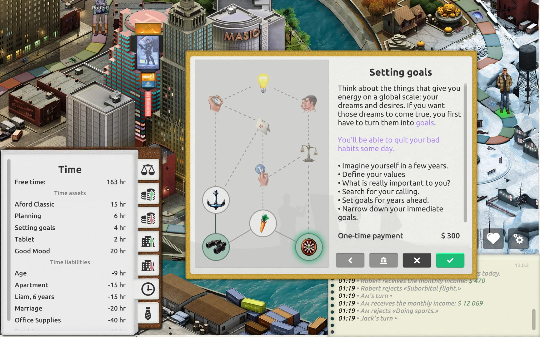 ეს თამაში გაგამდიდრებთ! შეისწავლეთ ინვესტირებისა და ცხოვრების მართვის საფუძვლები. თქვენი მიზანია, აიხდინოთ თქვენი ოცნება. შეგიძლიათ აიწყოთ კარიერა, შეიძინოთ უძრავი ქონება, მართოთ ბიზნესი, ივაჭროთ აქციებით, გახდეთ ბლოგერი, ან მოიხვეჭოთ ქონება ხელოვნების ბაზარზე. ამ ყველაფრისთვის საჭიროა სწავლა, ნეთვორქინგი და დროის დაგეგმვა.