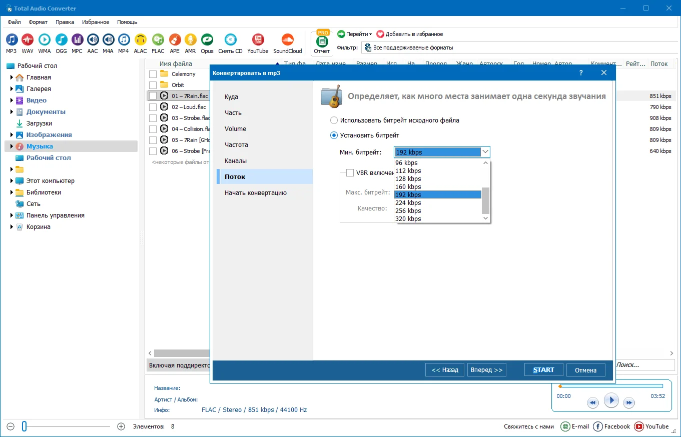 აუდიო ხარისხის კონტროლი 🎚️: ბიტრეიტის, სიხშირისა და არხების მორგება.
