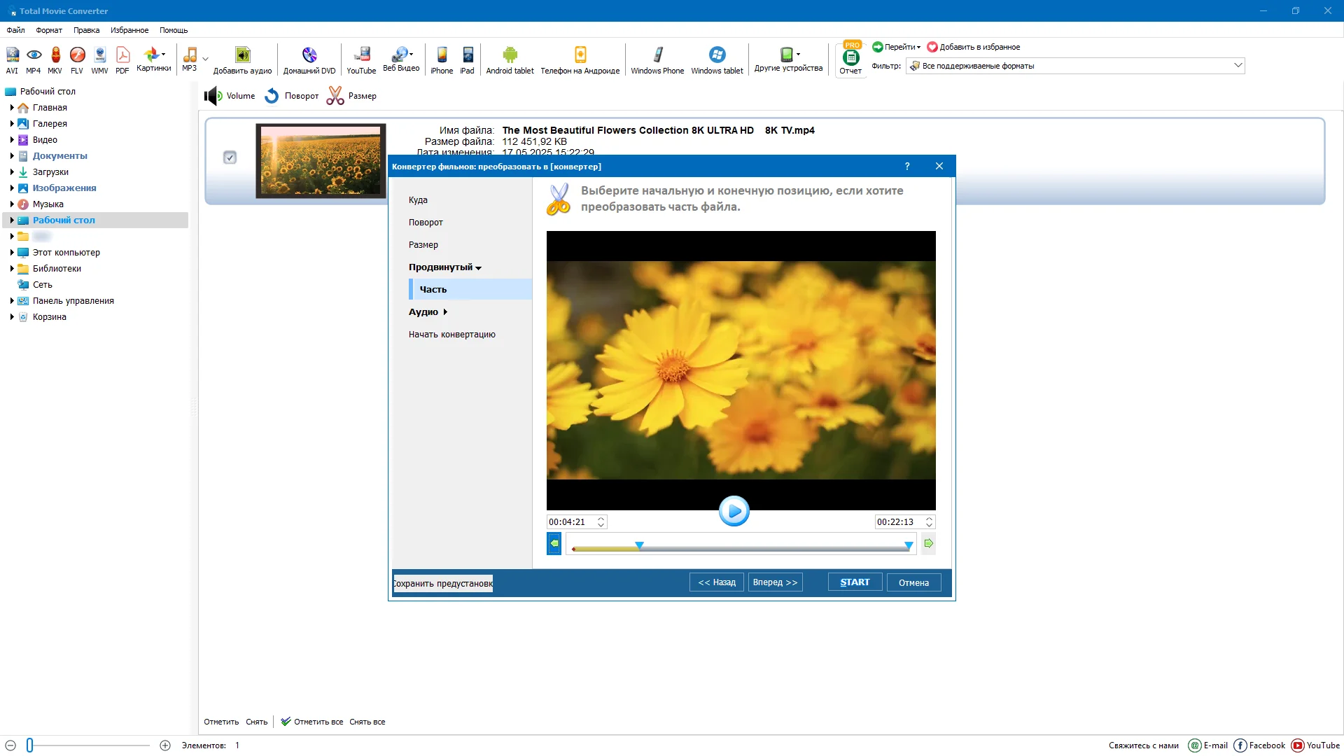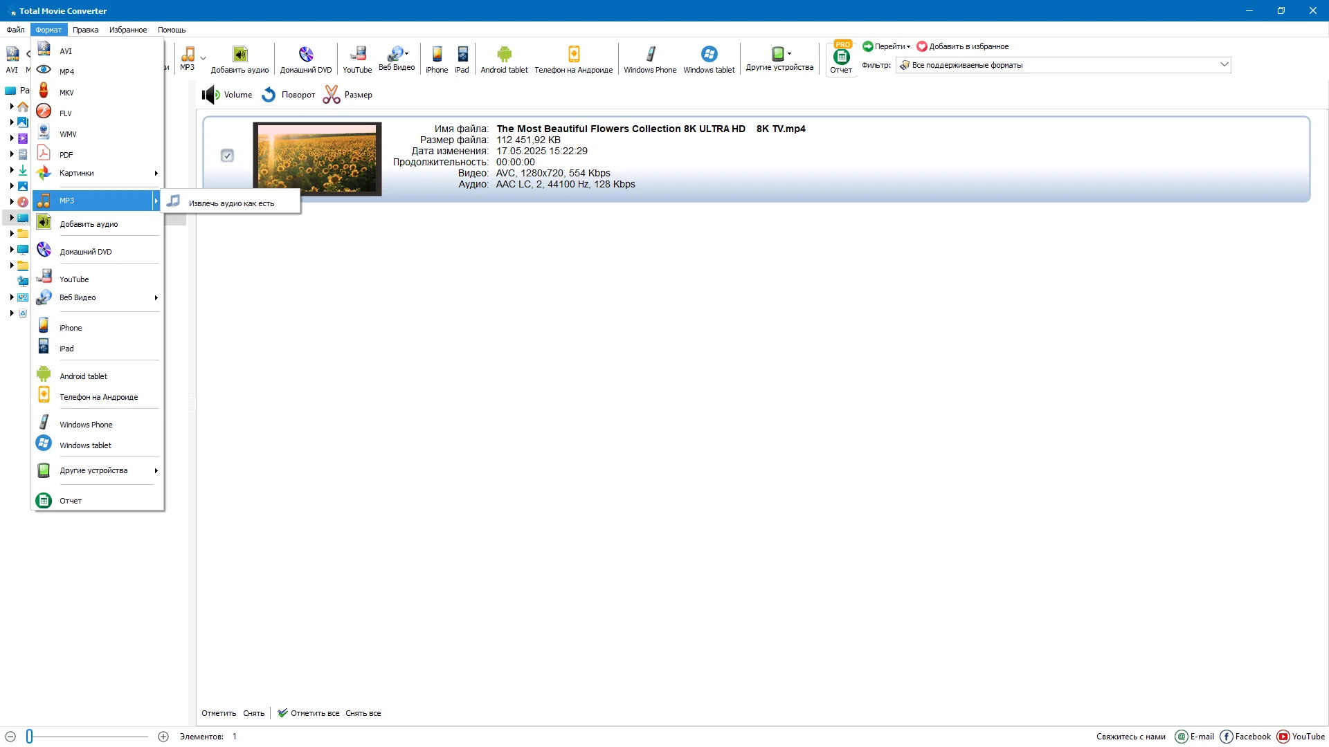 CoolUtils Total Movie Converter — ეს არის პროფესიონალური ვიდეო კონვერტერი, რომელიც საშუალებას გაძლევთ მარტივად და სწრაფად გადააქციოთ ნებისმიერი ფორმატის ვიდეო სხვა ფორმატში, ისე რომ შენარჩუნდეს მაღალი ხარისხი. პროგრამა უჭერს მხარს პოპულარულ ვიდეო ფორმატებს (MP4, AVI, MKV, MOV, WMV, FLV და სხვ.) და საშუალებას გაძლევთ ოპტიმიზაცია მოახდინოთ ვიდეოები მობილური მოწყობილობებისთვის, ტელევიზორებისთვის ან ონლაინ პლატფორმებისთვის. ინტუიციური ინტერფეისი და სწრაფი კონვერტაციის ალგორითმი მას შესაფერისს ხდის როგორც დამწყებთათვის, ისე პროფესიონალებისთვის.