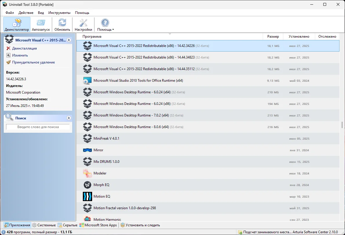 აპლიკაციების დაჯგუფება 📂: პროგრამების დაჯგუფება კატეგორიების მიხედვით (აპლიკაციები, სისტემური კომპონენტები, დამალული), რაც გაადვილებს მათ მართვას.