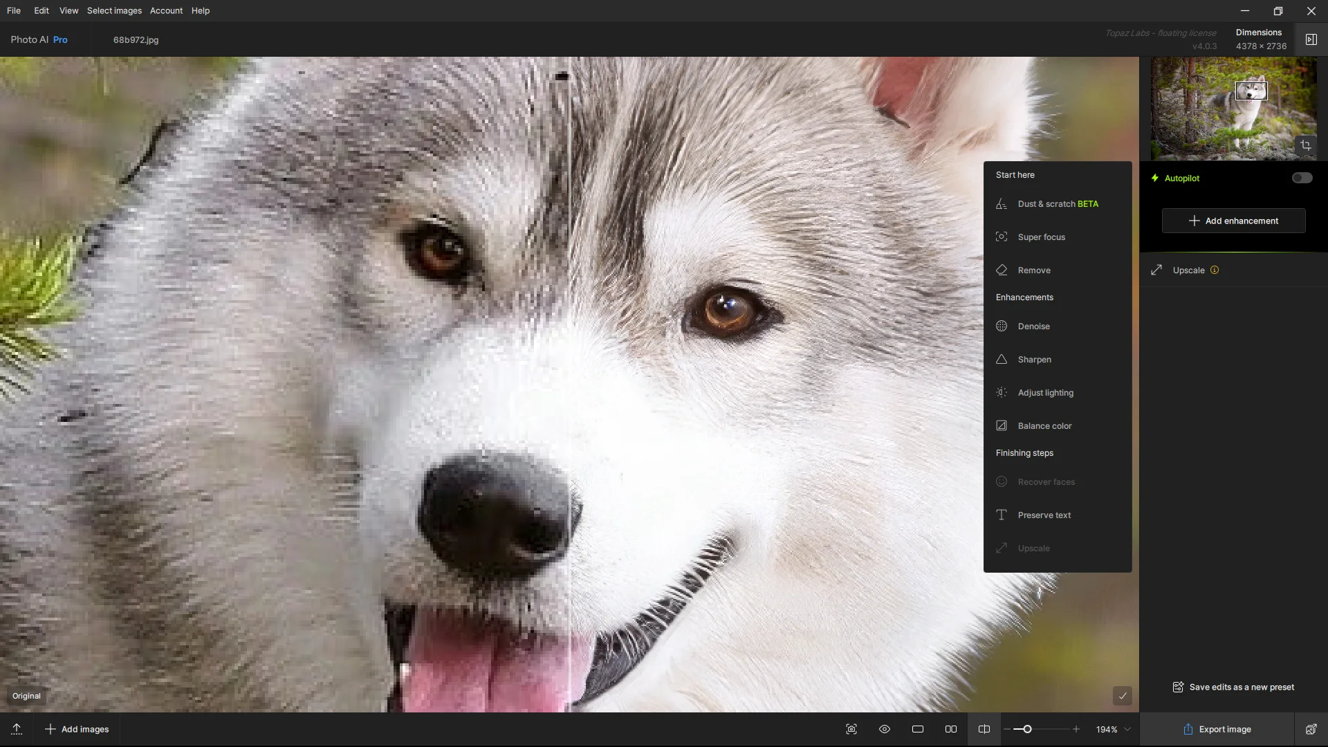 AI-ზე დაფუძნებული სამუშაო პროცესი: პროგრამა იყენებს ხელოვნურ ინტელექტს, რათა ავტომატურად დაადგინოს სურათის სისუსტეები და ოპტიმალურად გააუმჯობესოს ის.