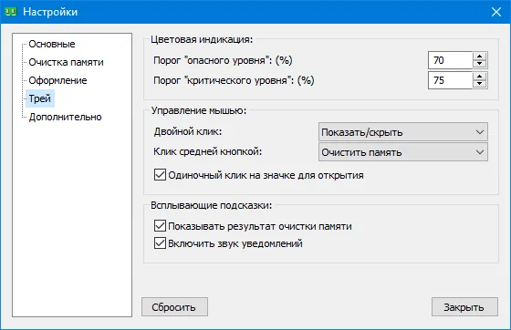 ავტომატური წმენდა: მომხმარებელს შეუძლია დააყენოს ავტომატური გაწმენდა დროის ინტერვალებით ან როდესაც RAM-ის მოხმარება კონკრეტულ პროცენტს გადააჭარბებს.