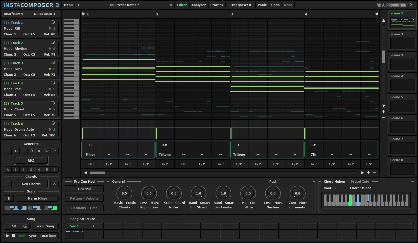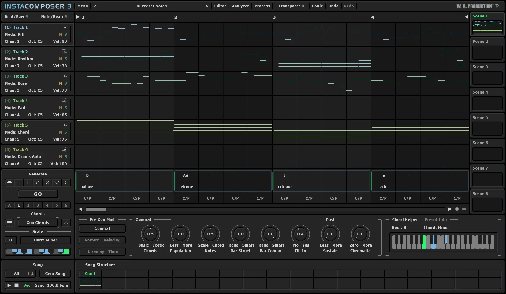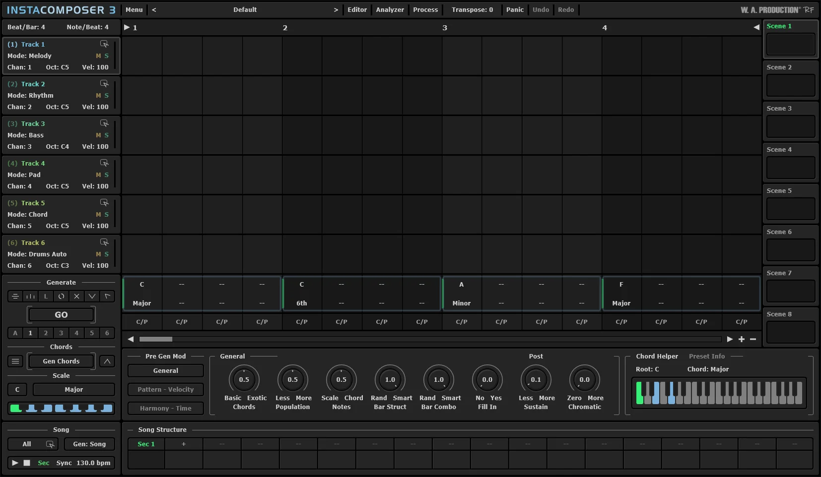 W.A. Production – InstaComposer 3 — ეს არის ხელოვნურ ინტელექტზე დაფუძნებული მუსიკალური კომპოზიციის გენერატორი, რომელიც ეხმარება პროდიუსერებს, კომპოზიტორებს და მუსიკის შემქმნელებს სწრაფად შექმნან მელოდიები, აკორდები, ბასის პარტიები და დრამის სტრუქტურები. InstaComposer 3 იყენებს მოწინავე ალგორითმებს, რათა შექმნას პროფესიონალურად ჟღერადი იდეები ერთ დაჭერაზე და სრულად თავსებადია ნებისმიერ DAW-სთან (FL Studio, Ableton, Cubase, Studio One და სხვ.).