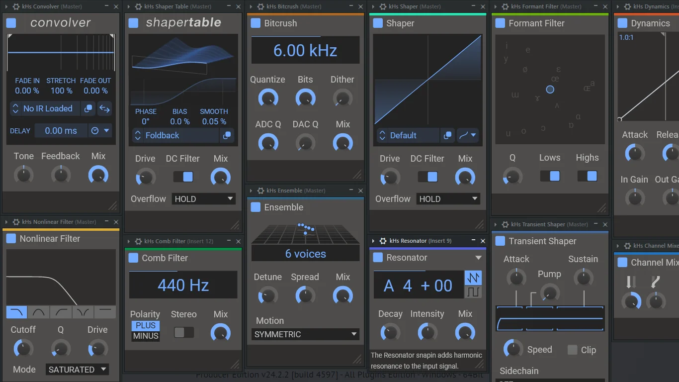 პლაგინების მრავალფეროვნება: EQ-ები, კომპრესორები, ფილტრები, დისტორშენები, დელეი და სხვა მრავალი ეფექტი 🎚️