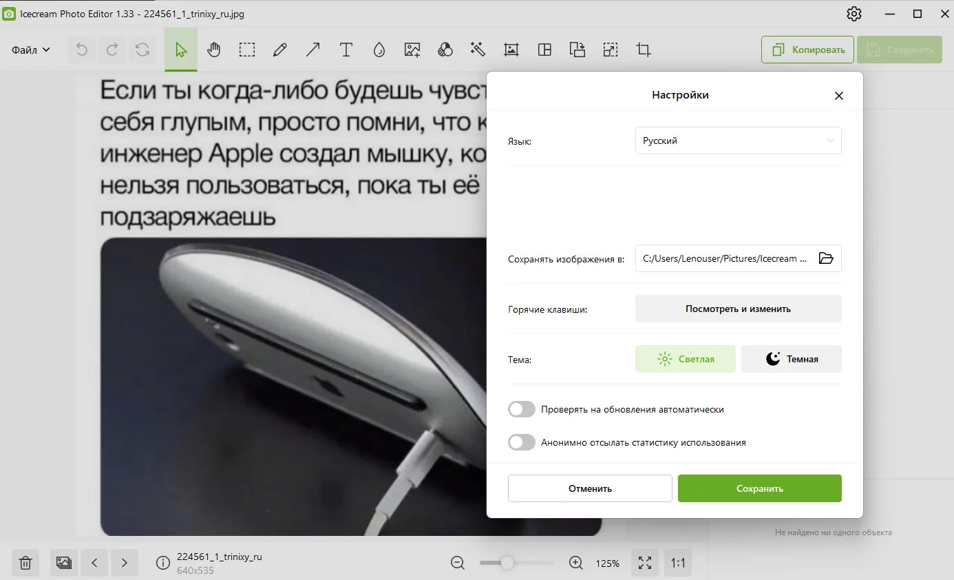 Icecream Photo Editor არის მრავალმხრივი და მოსახერხებელი პროგრამა, რომელიც შექმნილია თქვენი ციფრული ფოტოების მარტივად რედაქტირებისა და გასაუმჯობესებლად. ის გთავაზობთ ყველა საჭირო ინსტრუმენტს: ფოტოების ამოჭრას, ზომის შეცვლას, დატრიალებას, ფილტრების, ტექსტისა თუ სხვადასხვა ფიგურების დამატებას. მიუხედავად იმისა, გსურთ პორტრეტის რეტუშირება თუ შთამბეჭდავი კოლაჟის შექმნა, მისი ინტუიციური ინტერფეისი ფოტოების დამუშავებას ყველასთვის ხელმისაწვდომს ხდის — დამწყებებიდან პროფესიონალებამდე.
