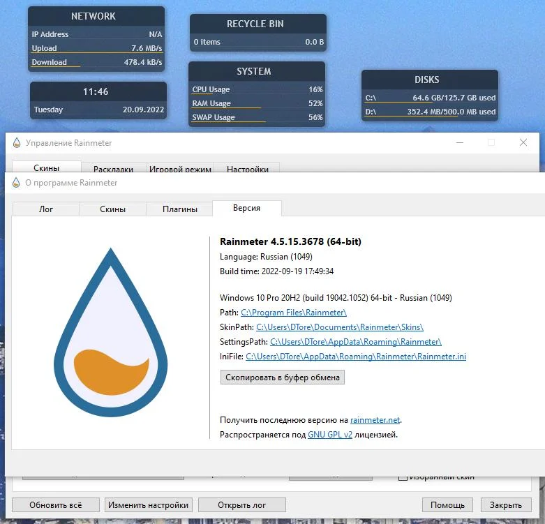 Rainmeter-ის სკინები შეიძლება იყოს როგორც ესთეტიკური, ასევე მაღალფუნქციური: